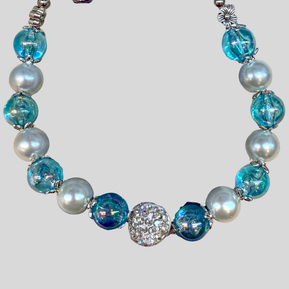 Wristlet - Tourquoise and Pearl Beads in Silver Setting